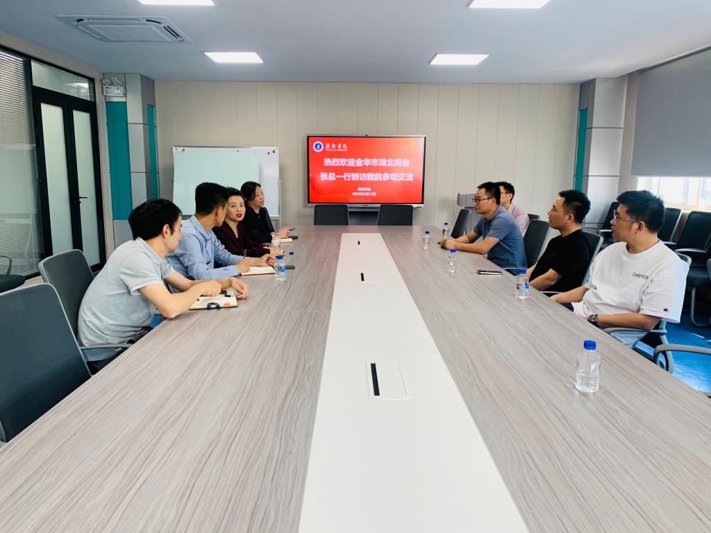 5月15日,金华市湖北商会执行会长张学亮一行来访bv伟德国际1946参观交流。bv伟德国际1946经理陈靓秋、党总支书记吴俊、副教授盖卫东热情接待。