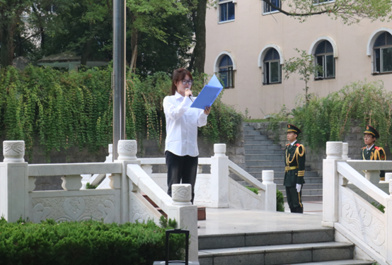 武汉校区员工代表夏昭阳同学发言,她说:“生逢盛世,青年一代应积极响应时代号召,不忘历史、不负年华,让青春无悔,让人生有为。”