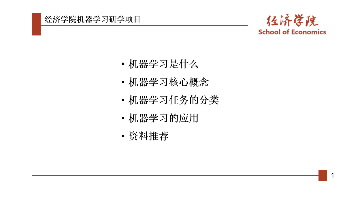 在实验项目基础理论模块中,刘老师首先介绍了“机器学习基础”,刘老师从描述人们通过学习过往经验并做出有效决策的谚语,引出机器学习的内涵;接着从机器学习的核心概念出发,讲述了机器学习中模型、策略、算法三要素和训练集、测试集、泛化能力等专业术语;并梳理了监督学习、无监督学习、强化学习三大机器学习主要任务分类;最后,为同学们介绍了机器学习方法在金融和经济领域中的实际应用。