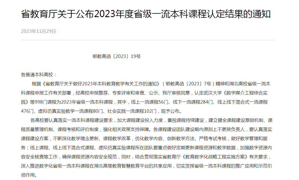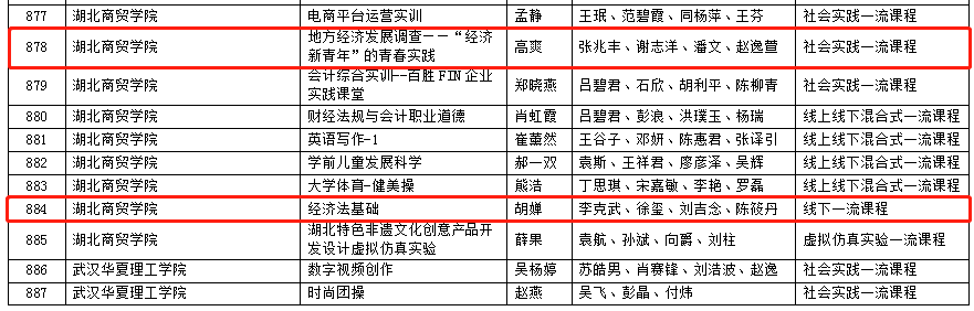近日湖北省教育厅公布了2023年度省级一流本科课程认定结果,bv伟德国际1946胡婵副教授主讲的《经济法基础》成功获批线下一流课程、高爽老师主讲的《地方经济发展调查--“经济新青年”的青春实践》成功获批社会实践一流课程。