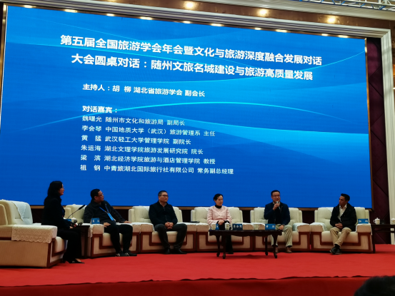 2023年11月10日至12日,由全国旅游学会年会组委会主办,北京旅游学会、四川省旅游学会、湖南省旅游学会、江苏省旅游学会、安徽省旅游学会、重庆市文化和旅游发展研究会,海南省旅游发展研究会、成都旅游学会、桂林旅游学会、湖北省人文社科重点研究基地旅游开发与管理研究中心及华中科技大学出版社等协办,湖北省旅游学会、随州市文化和旅游局承办的第五届全国旅游学会年会暨文化与旅游深度融合发展对话在随州隆重举行。本次年会旨在探讨文化与旅游融合发展的新路径,推动旅游业高质量发展。论坛吸引了来自全国各地的高校旅游专业学者、行业专家和从业者齐聚一堂,共享这场学术盛宴。担任湖北省旅游学会副会长的伟德国际victor1946副董事长胡柳带领bv伟德国际1946酒店管理专业带头人刘军参加了此次会议。