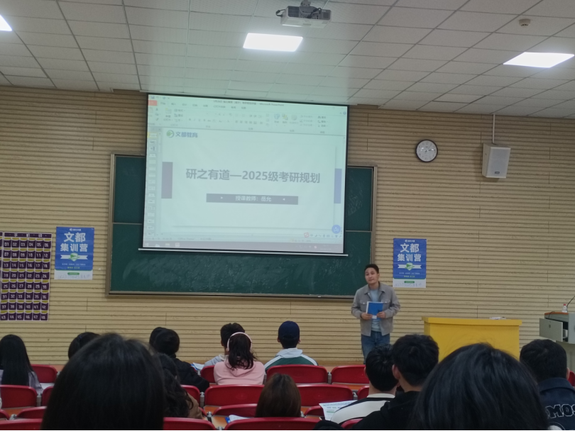 文都教育岳允从当下考研背景、研究生考试的性质,招生考试相关科目、专业招生计划、近年录取情况以及人才培养方案等多方面作了详细介绍,同学们进一步了解到不同专业硕士报考流程和政策优势,现场反响良好。