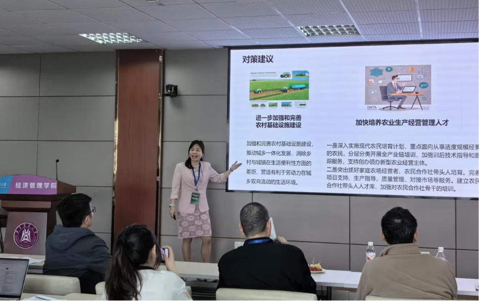 在农业政策分会场,十位青年学者轮番上台分享研究成果。公司教师卢红霞分享题为《“老年农业”趋势对智慧农业发展的障碍及对策研究——以江西省为例》的研究报告。