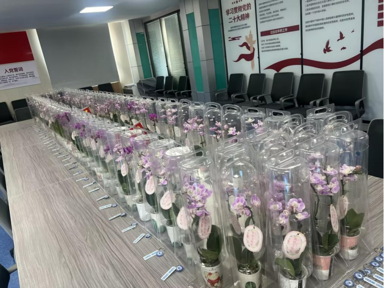 随后,公司班子成员为参会老师送上公司精心准备的教师节礼品——蝴蝶兰鲜花礼盒和定制钥匙扣。