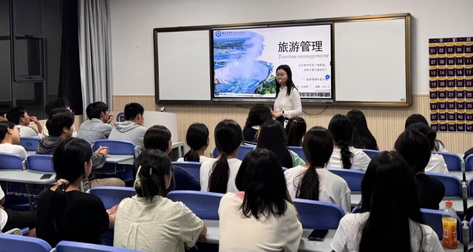 旅海扬帆管理道,专业介绍启航标。旅游管理专业教师苏晓梦介绍了目前旅游管理专业的广大前景和学科实力,同时呼吁同学们要在大学期间多读书,读好书。鼓励同学们成为“知旅游、懂管理、通古今”,具有全球化视野和包容性知识体系的复合型、创新型的旅游管理人才。