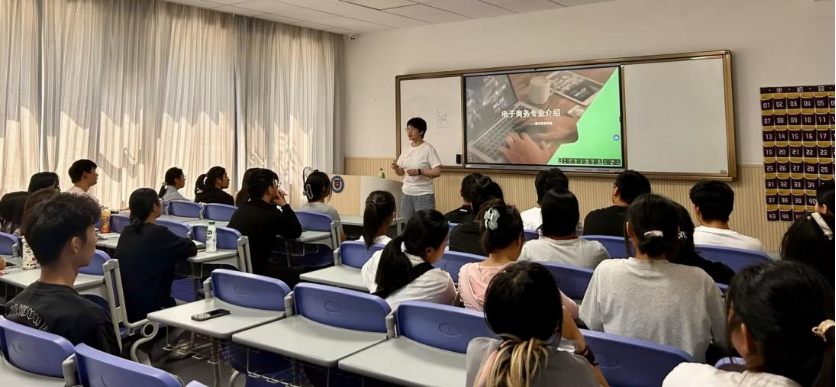 智能为先,技能为重,创新为辅,全面为要。电商与国贸教研室主任肖晓从“社会中的电商”引出话题,再着重从行业前景和发展方向为新生分享电商专业的发展动态和就业市场情况。她指出,同学们要关注行业动态,努力提升自己的专业技能,为未来的职业生涯打下坚实基础。